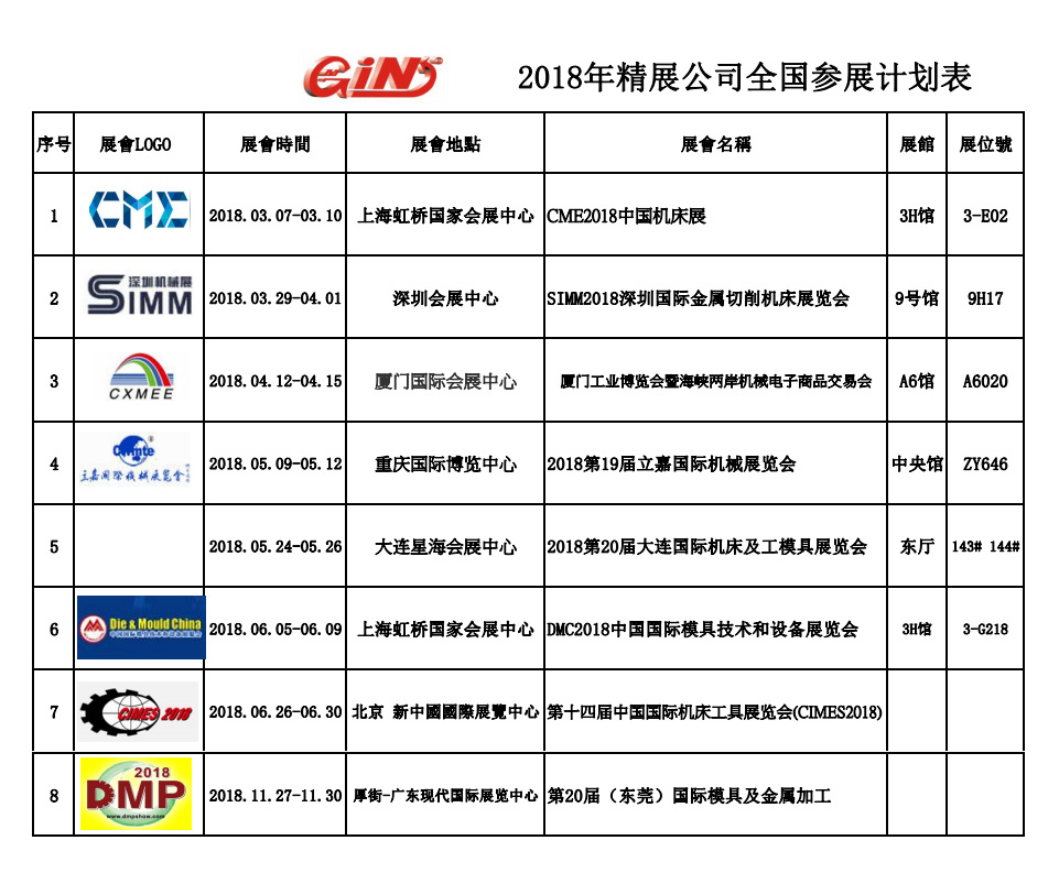 2018年精展公司全國參展明細